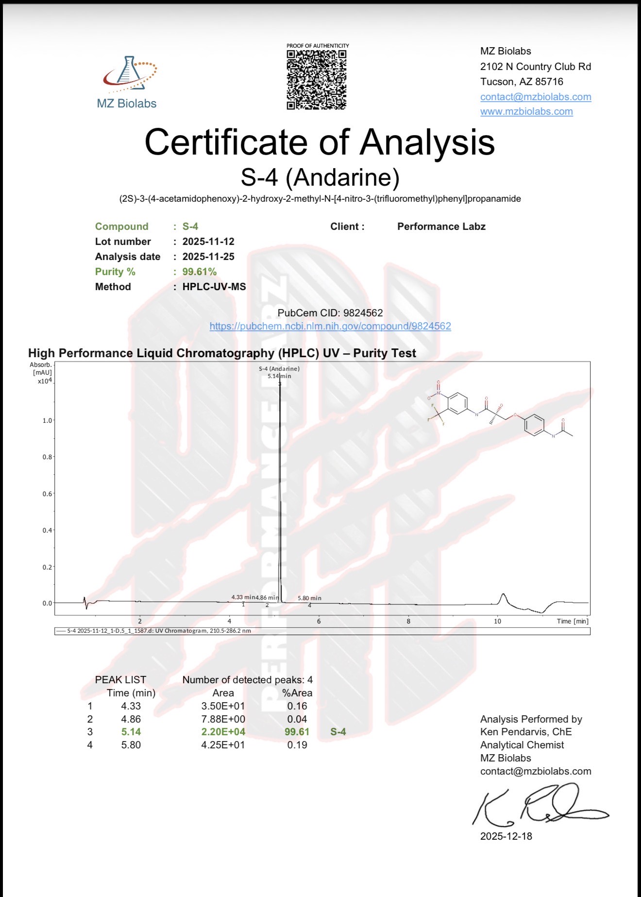 Warning: Not for human consumption. For research purposes only. This product should only be handled by licensed, qualified professionals. This product is not a drug, food, or cosmetic and should not be misbranded, misused or mislabeled as a drug, food or cosmetic.
